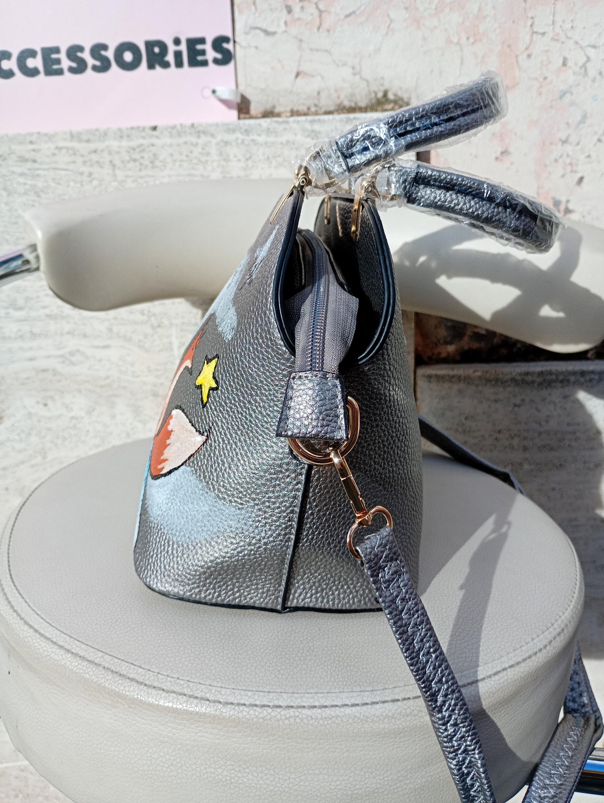 Borsa Dipinta a Mano – Il Piccolo Principe – “L’essenziale è invisibile agli occhi” –Pelle Ecopelle – Personalizzabile