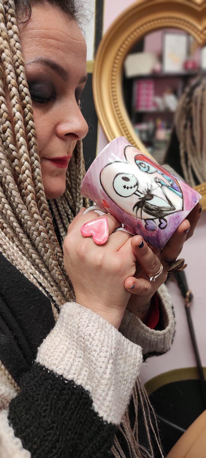 Rendi speciale la tua pausa caffè o tè con una tazza in porcellana dipinta a mano, perfetta per gli amanti degli accessori unici! Qui vedi alcuni esempi di tazze già realizzate, ma possiamo decidere insieme il soggetto o riprodurre qualsiasi personaggio per rendere la tua tazza davvero speciale.
