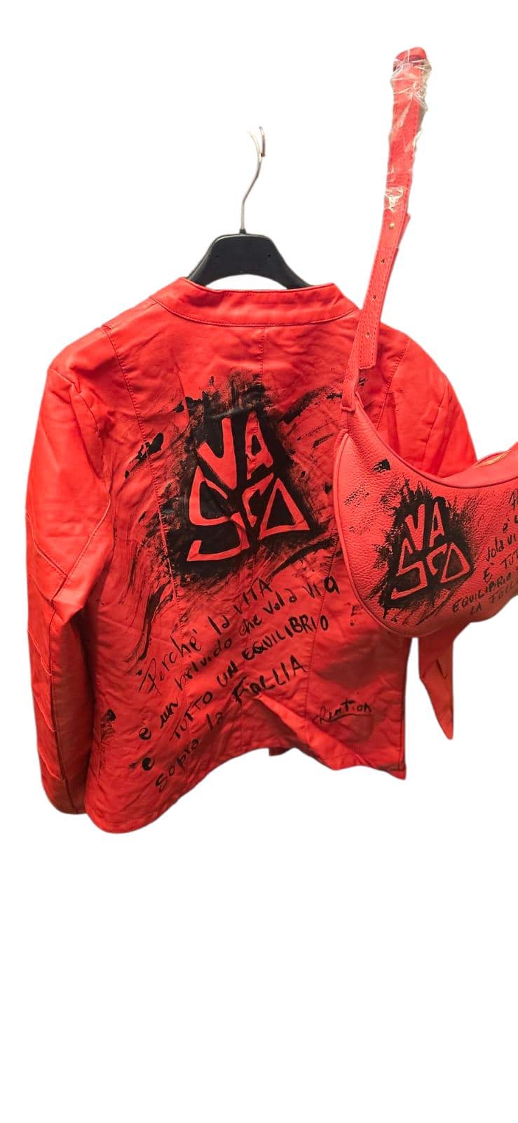Un capo unico per veri fan del Blasco! Questa *giacca dipinta a mano* è decorata con il *logo ufficiale di Vasco Rossi* e frasi iconiche tratte dalle sue canzoni. Un’opera d’arte da indossare, perfetta per portare con te la musica e l’energia del rocker italiano per eccellenza!